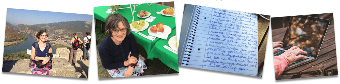 Wherever possible, Marion writes sitting down at ground level, on a cushion near a radiator or on a step in the garden. She enjoys the flow of writing her memoir material into a notebook, then refines her work over many drafts. If she remembers some detail about her story, usually at 5 in the morning, she tries to capture it in a note on her mobile.